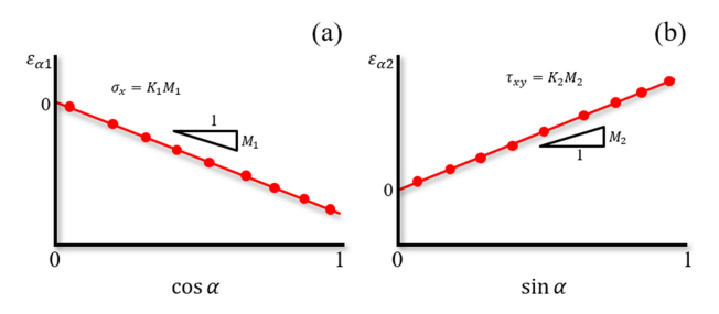 cosα and sin α diagram; (a) The cosα diagram for σx determination and (b) The sinα