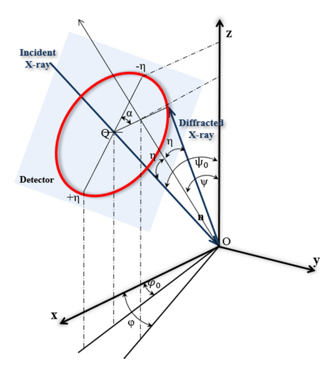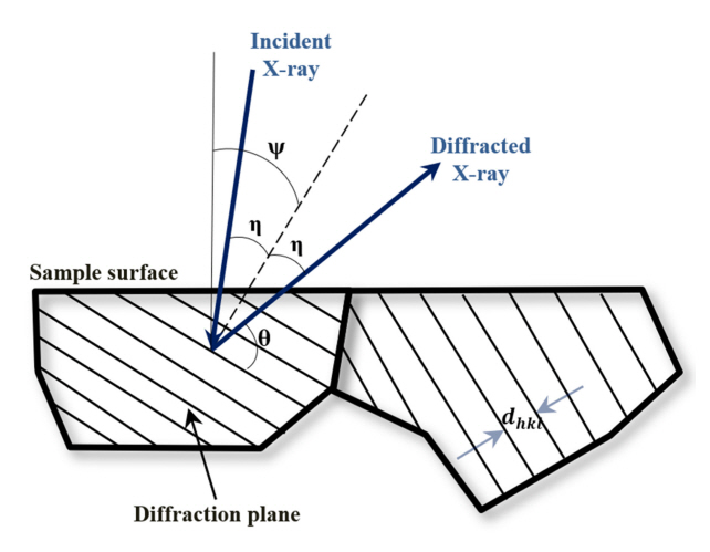 principle of residual stress measurement using X-ray diffraction.