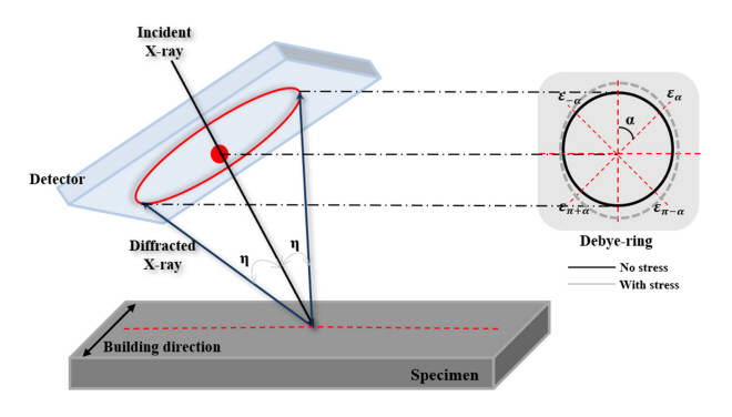 정리하여 재구성하였다. X선 회절법을 활용한 Williamson-Hall plot 방법의 경우 G. Williamson 등[24], S. Debnath 등[25], P. Killen 등[26], A. Stokes 등[27]의 자료를, sin2ψ 방법은 I. Noyan 등[28], P. Prevey 등[29], M. Fitzpatrick 등[30]의 자료를 참고하였다. 역시 X선 회절법을 활용한 방법인 cosα 방법은 D. Delbergue 등[31], N. Peterson 등[32], T. Sasaki 등[33,34], K. Tanaka 등[35,36] 연구팀에서 발간한 자료를 참고하여 이론적 배경을 정리하였다.