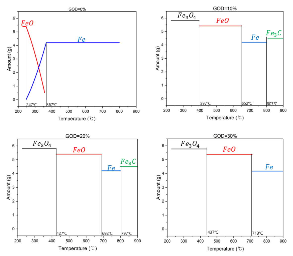 to various GOD (gas oxidation degree) values, as shown in Figure 2. GOD is defined as the volumetric content of CO2 in reducing gas to represent the oxidation state of the gas.