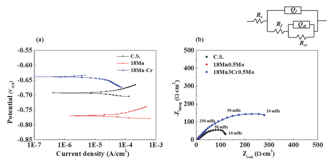 기여하며 장기적인 부식반응 억제를 제어할 수 있는 것으로 보고되고 있다. Cr 첨가를 통한 고Mn강의 표면 보호기능에 대한 연구는 중성 수용액 환경