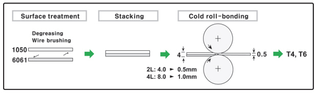 as the 2-layer CRB. The bonding between both Al sheets was so sound that it was difficult