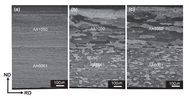 specimens for 4-layer CRB are shown in Fig 5. The as-rolled and the T6-treated specimens showed a deformation and a recrystallization