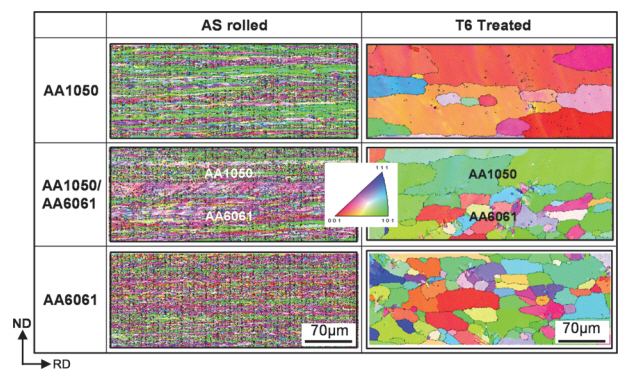 AA1050 and AA6061 regions, respectively. This means that the grain size of the specimen
