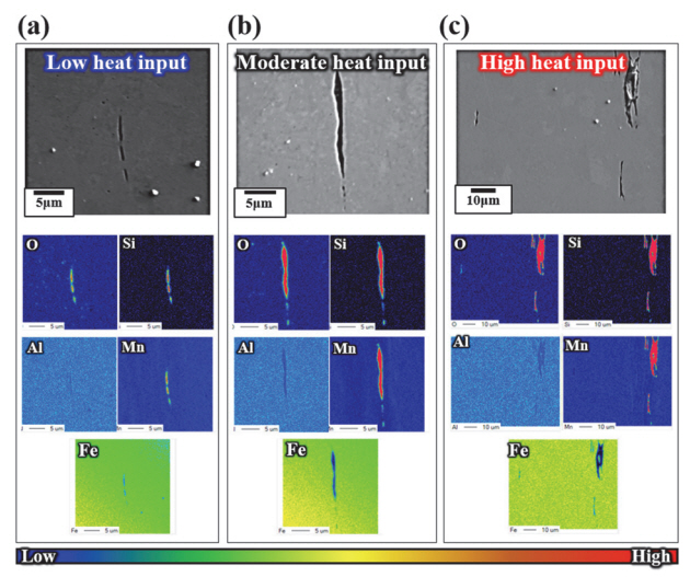 Results of EPMA analysis of the penetrators in ERW bondline with different heat inputs: