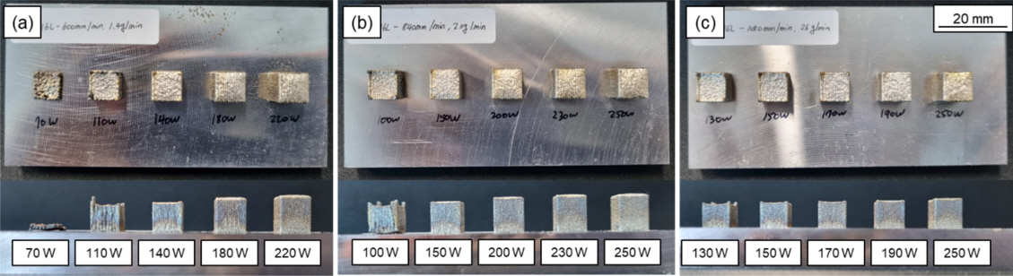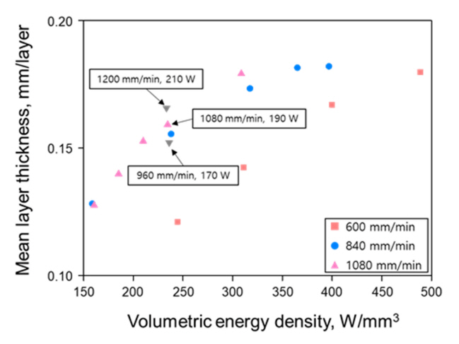 ์ ์ธต ์ ์กฐ๋ AISI 316L ์ ์ธต์ฌ์ ์น์ ์ ๋ฐ๋์์ ๊ด๊ณ์ ๋ํ ์ฐ๊ตฌ๋ ๋ณด๊ณ ๋ ๋ฐ ์๋ค. L-DED ๊ณต์ ์์ ์ฉ์ต ํ์ ํํ๋ ๋ ์ด์ ์ถ๋ ฅ๊ณผ ์ค์บ