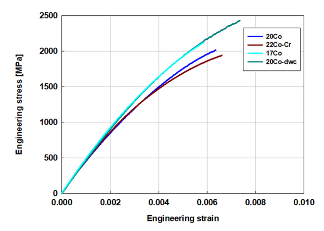 ์๊ฐ ๋ฏธ์ธํ 20Co-dwc ํฉ๊ธ์ ์ต๋ ์ธ์ฅ ๊ฐ๋์ ํ๋จ ์ฐ์ ์จ์ ๋ค๋ฅธ ํฉ๊ธ์ ๋น๊ตํ์ฌ ๊ฐ์ฅ ๋๊ฒ ๋ํ๋ฌ๋ค. WC ์