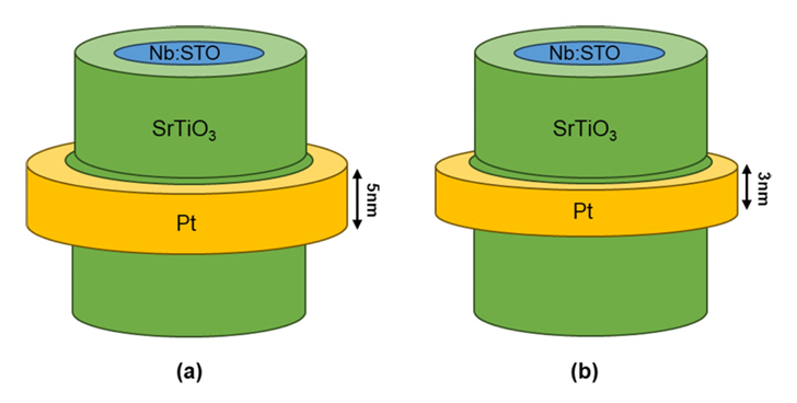 synapse devices: (a) device A - planar STO, (b) device B - planar STO with a narrower