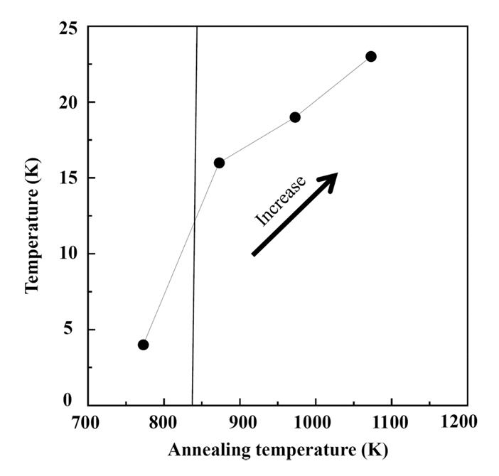 )을 요약하여 나타내었다. △T는 열처리 온도(Tanneal)가 증가함에 따라 증가한다. △T는 식 1과 같이 Fitting될 수 있다.