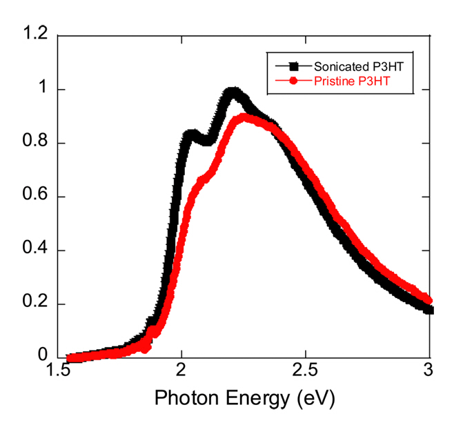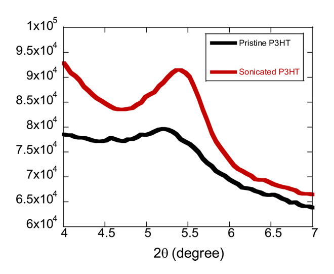Sonication of P3HT led to an increase in the crystallinity of the material, as evidenced
