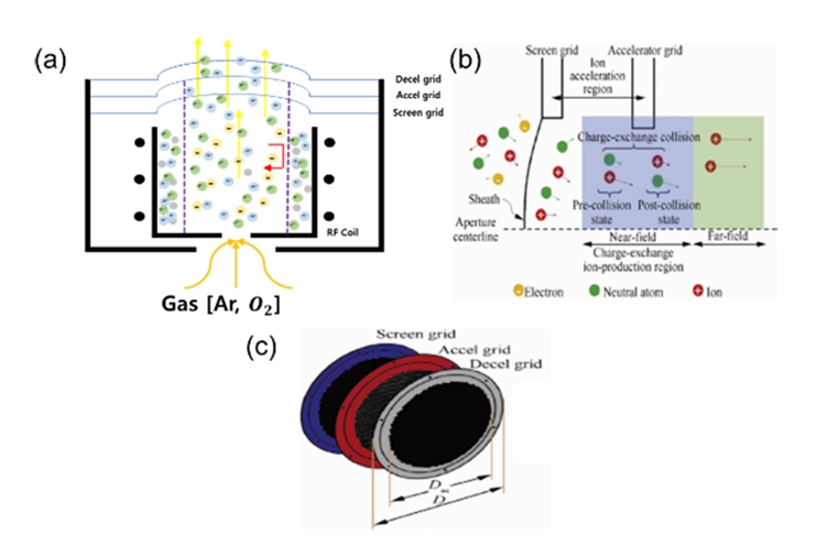 확인할 수 있다. 특히, 이온의 이동을 세밀하게 제어하기 위한 RF source grid는 역할에 따라 screen grid, accelerator