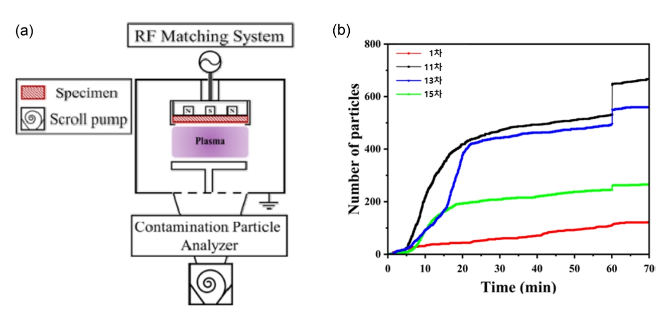 된다. 이 과정에서 챔버 내벽은 플라즈마에 의해 의도하지 않은 식각이 발생하고 이는 결국 다양한 오염 입자를 발생시킨다[1,2]. 이러한 오염물질은 반도체 공정의 불량 및 수율 저하 문제를 야기시킬 뿐만 아니라 반도체 장비 부품들의 수명을 단축시킨다. 이를 최소화하기 위해서는