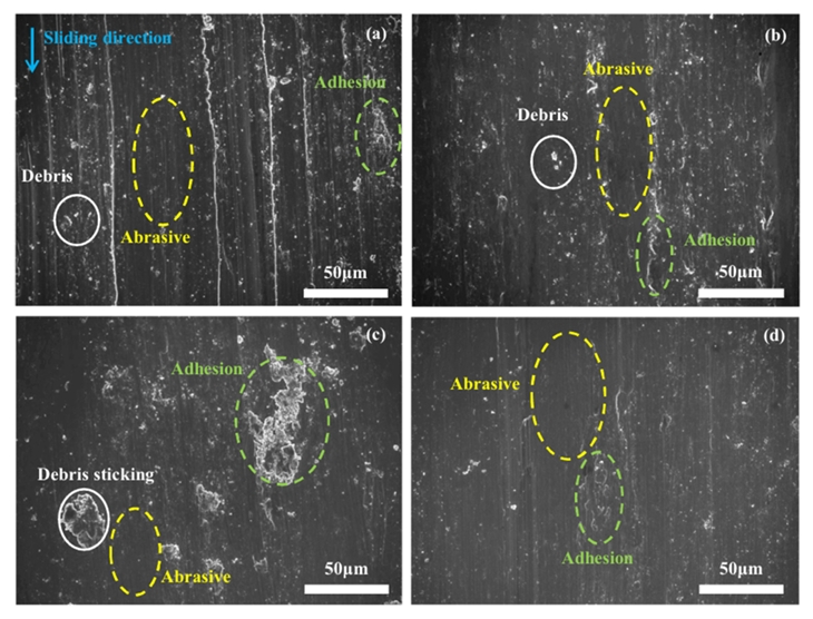 Austria)장비를 사용하였다. 마모 후에는 FE-SEM을 활용하여 마모 표면의 트랙을 관찰하였으며, 3차원 표면 분석을 위해 3D 레이저 현미경(VK-X1050,