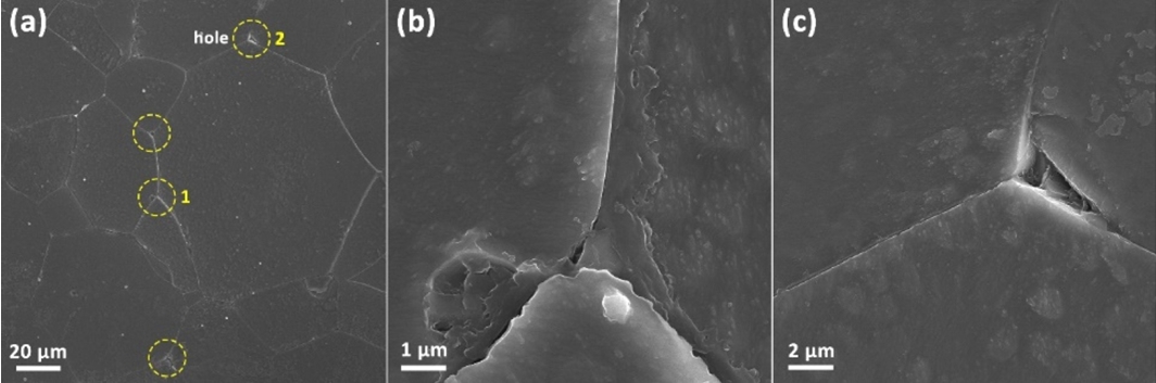 with solid solutions and an oxygen-rich interface that formed between the grains.