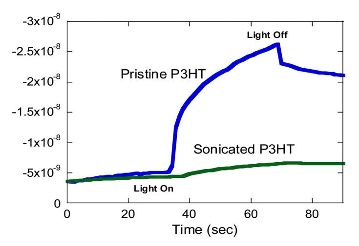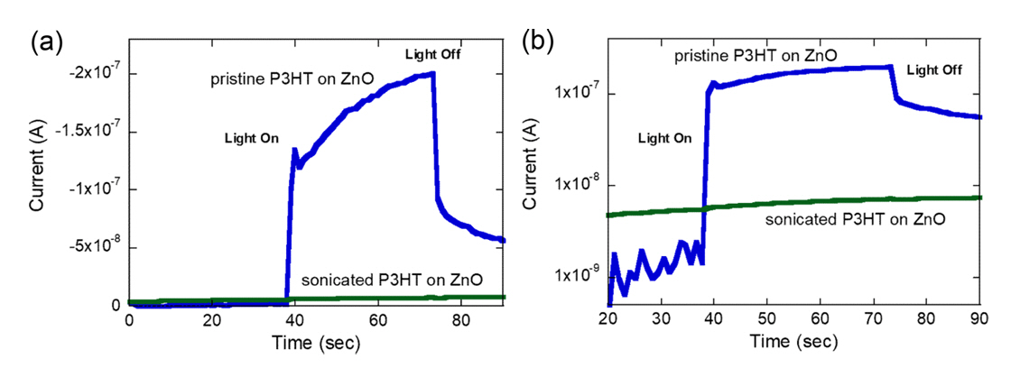 illumination, likely due to electron trapping. However, sonicated P3HT interfaced