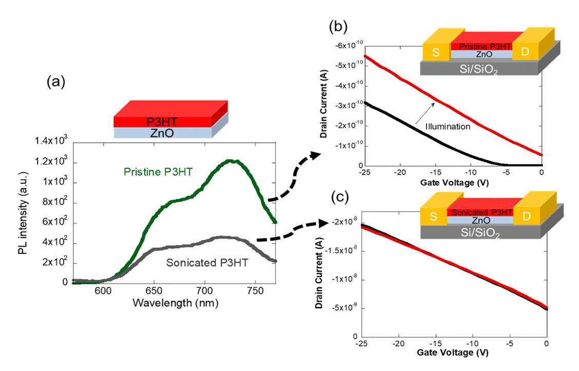 Conversely, in the sonicated P3HT/ZnO FET, excitons are predominantly quenched within