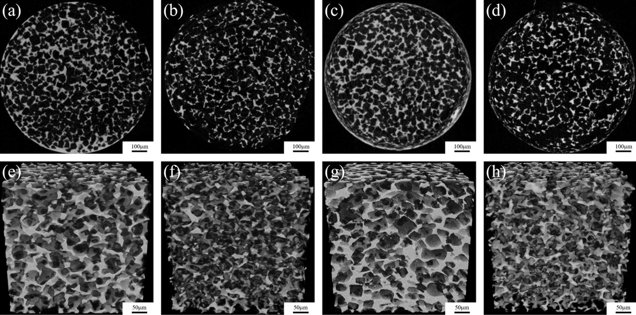 Micro-CT cross sectional images and 3D models of Al foam. Spark plasma sintering sample