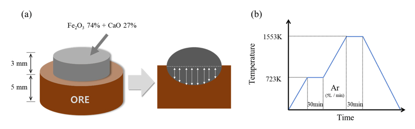 Fig 2 shows a schematic of the experimental procedure. Ore fines were pressed into cylindrical