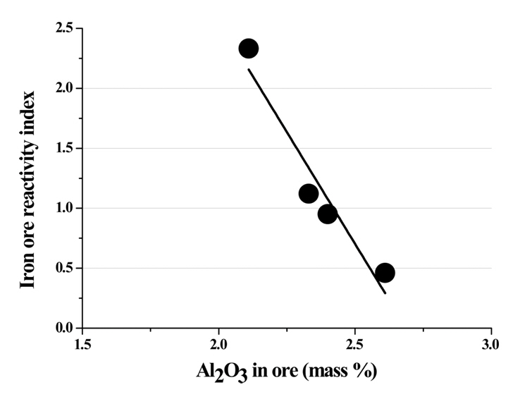 ore deteriorate with increasing Al2O3 content in the iron ore. A sinter POT test revealed that the poorer the assimilation