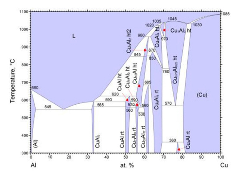 Al2Cu3, Al3Cu2, AlCu3, Al3Cu, AlCu, Al8Cu
