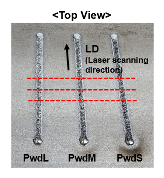 PLD에 따른 비드와 melt-pool의 형상 변화를 관찰한 결과, PLD가 큰 PwdL 조건에서는 비드가 substrate에 온전히 결합하지 못하고