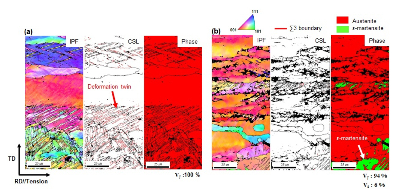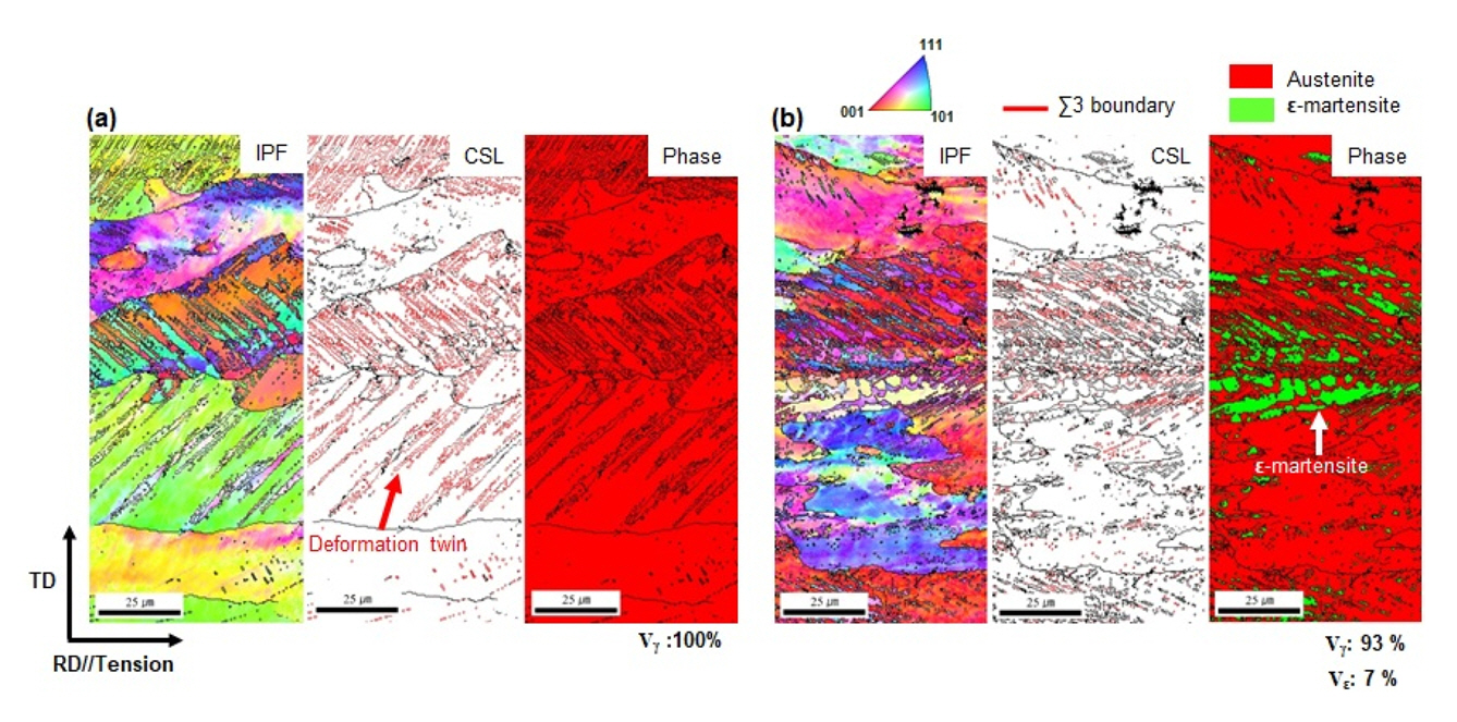 The deformation mode of high-Mn steel during tensile deformation varies depending