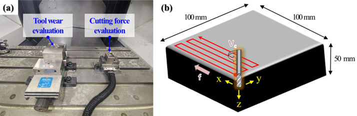 Doosan Machine Tools)๋ฅผ ์ฌ์ฉํ์๊ณ , ์ ์ญ๋ ฅ์ ๊ณต๊ตฌ๋๋ ฅ๊ณ(9119AA2, Kistler)๋ก ์ธก์ ํ์์ผ๋ฉฐ, ๊ณต๊ตฌ๋ง๋ชจ ์ ๋๋ ๊ฐ ์ํ๊ฑฐ๋ฆฌ๋ง๋ค