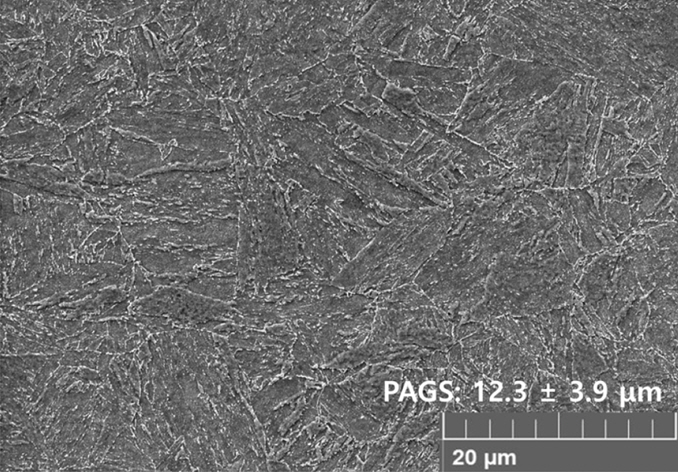 grain size (PAGS) 변화는 ASTM E 112에 따라 linear intercept method를 적용하여 영역별 3,000배 확대 이미지를