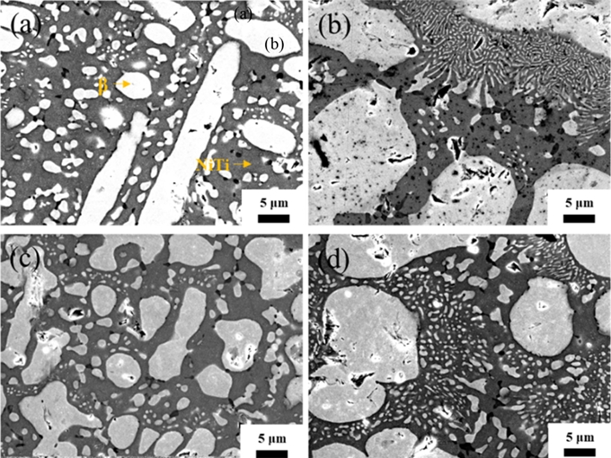 Nb-NiTi 의사이원계(pseudobinary) 상태도를 보면[2,3] NiTi상과 Nb상이 응고시 공정 반응에 의해 형성되기 때문에 NiTi상과 β Nb상으로 구성된 이상 구조(two-phase structure)를