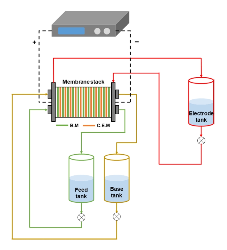 전기투석(Bipolar Membrane Electrodialysis) 방법을 응용하여 폐수를 산(Acid) 및 염기(Base)로 회수하는 연구가 활발히