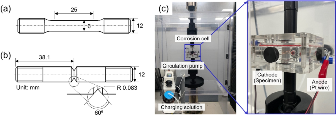์์์ทจ์ฑ ํ๊ฐ๋ ๋์ผํ ์ฅ๋น์์ in-situ ๋ฐฉ์์ ์ ์๋ณํ๋ฅ ์ํ(slow strain-rate test, SSRT)์ ์ํํ์๋ค. ์์ ์ฃผ์