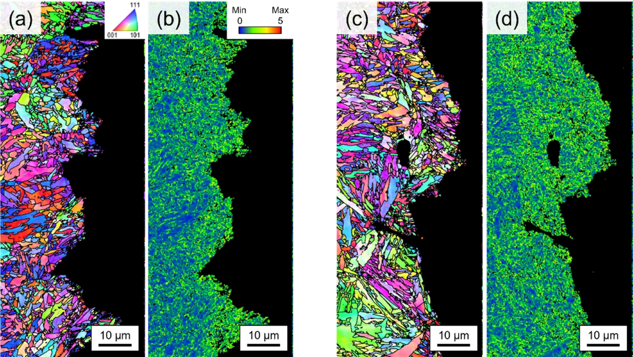 ธ์น ์ฃผ์์์ ๊ด์ฐฐํ์ฌ ์์์ ์ํ ํ๊ดด ์์์ด ๋ฐ์๋๋๋ก ๊ด์ฐฐํ์๋ค. EBSD ๋ถ์์