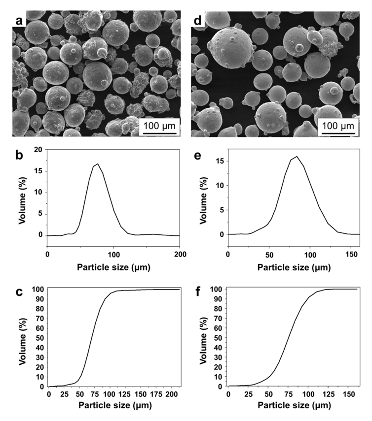 the size distribution of the powder used in this study are shown in Fig 1. The Al and Inconel 625 powders mostly have a spherical shape with a small portion