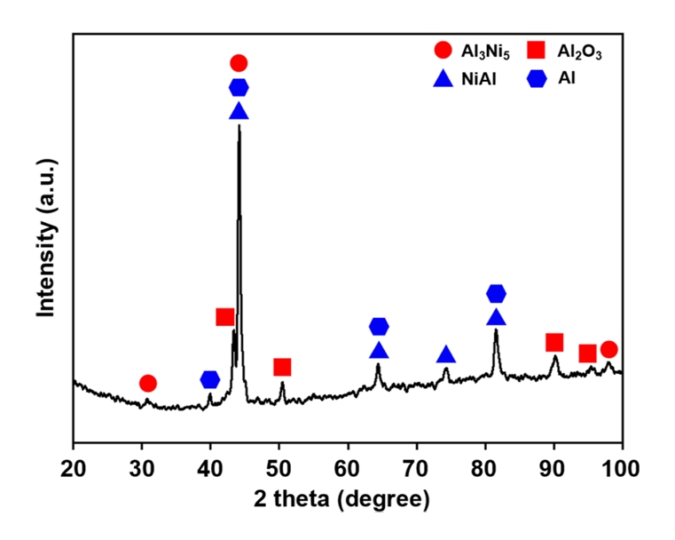NiAl and Al3Ni5 phases, previously identified by the EDS analysis, were again detected, confirming