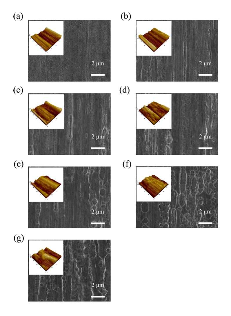 알칼리 에칭은 50°C의 TE-100 용액에서 5초 간격으로 침지 한 후 FE-SEM 및 AFM으로 표면형상 변화를 관찰하였다(그림 1).