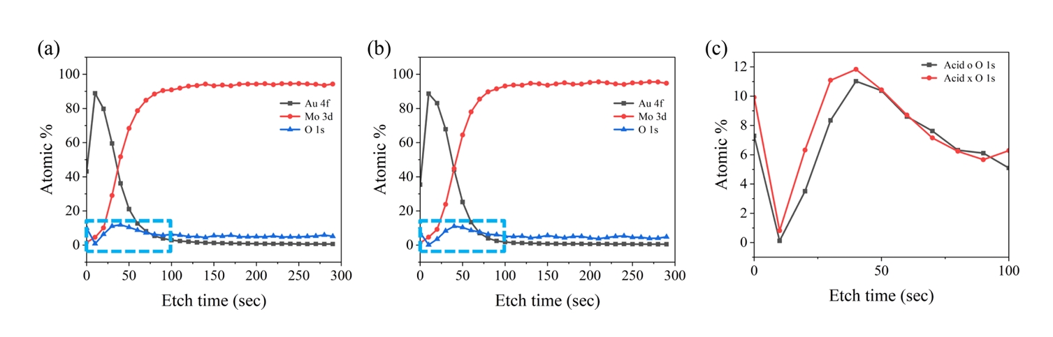 몰리브덴 표면의 산화막이 완전히 제거되지 않았음을 알 수 있었다. 이에 본 연구에서는 잔류 산화막을 완전히 제거를 위한 추가 산세 공정을 도입하였다.