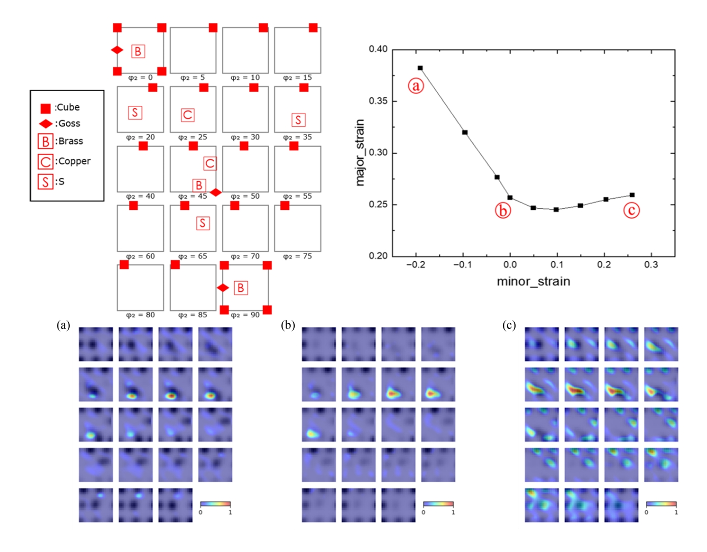 대체로 이 딥러닝 모델은 ϕ2가 20~35° 범위일 때의 β-fiber 상의 Brass-S-Copper 방위 분포함수 값을 중점적으로 보면서 예측을 진행한 것을 알 수 있다.