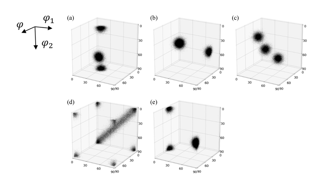 각각 ϕ1 0~85°, Φ 0~90°, ϕ2 0~85°의 범위에서 5° 간격으로 방위분포함수의 값을 계산하여 18×19×18의 크기의 3D텐서 데이터로 구성되었다. 이를 통해 입력 데이터의