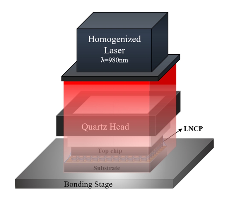 위해, 본 연구에서는 그림 1과 같이 레이저 기반 압착 접합(Laser-Assisted Bonding with Compression, LABC) 기술을 도입하였다[5-7].