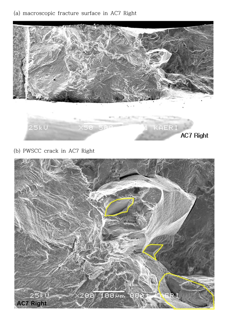 corrosion cracking, PWSCC)에 의한 손상을 겪는다[1]. PWSCC의 특징은 저 부식성의 원자로 1차 수에서 입계(intergranular, IG) 파괴 형태로 나타난다. 이 현상은 1957년에 최초로