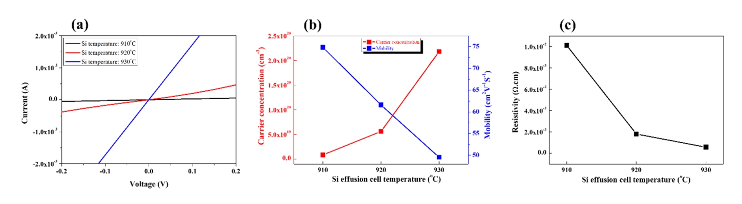 the Si effusion cell temperature, the carrier concentrations could be achieved in