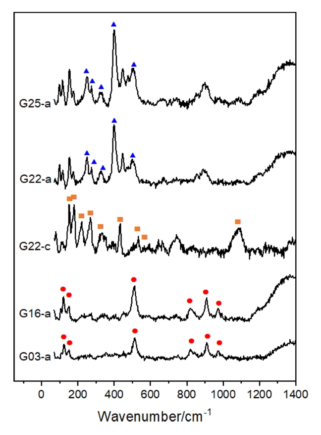 c 그룹 안료의 주요 광물상으로는 malachite로 동정되었다(그림 3).
