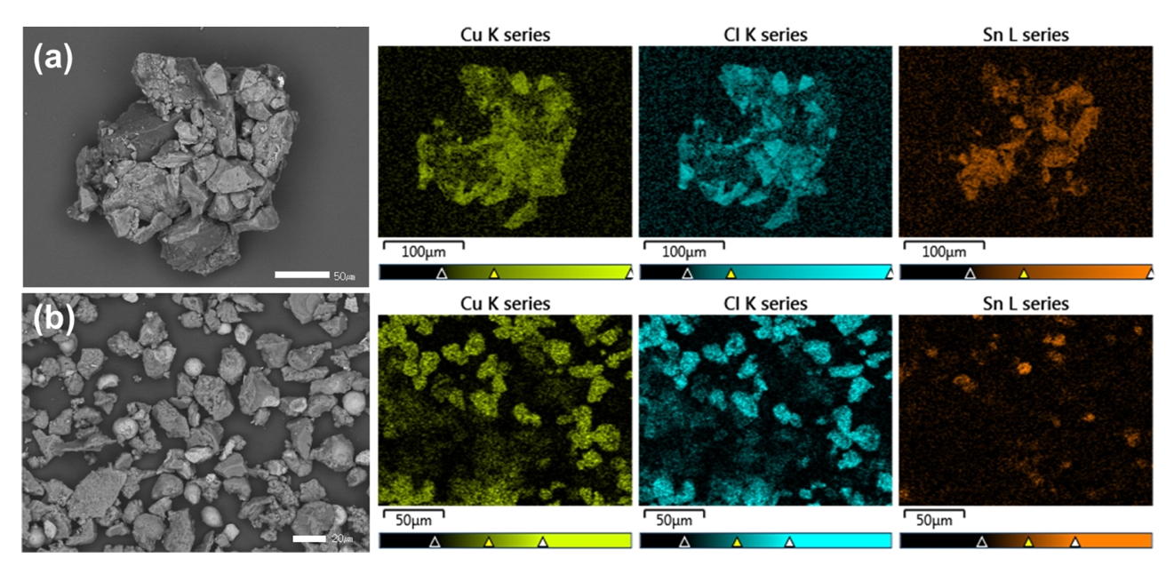 Sn이 입자 전반적으로 Cu와 Cl과 함께 균일하게 분포하는 경향이 관찰되었다(그림 9).