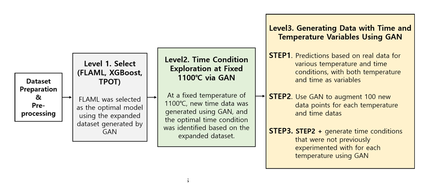 ๋ง์ง๋ง์ผ๋ก, Level 3์์๋ ๋ค์ํ ์จ๋(800ยฐC~1100ยฐC) ๋ฐ ์๊ฐ ์กฐ๊ฑด(1๋ถ~50๋ถ)์ ๋ํด GAN์ ํจ๊ณผ์ฑ์ ํ์ธํ์๋ค. ์ด๋ Level