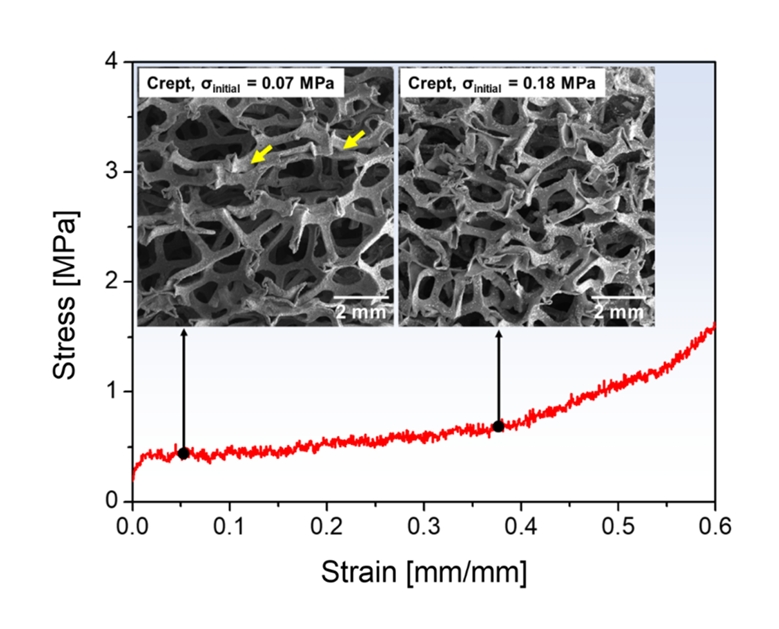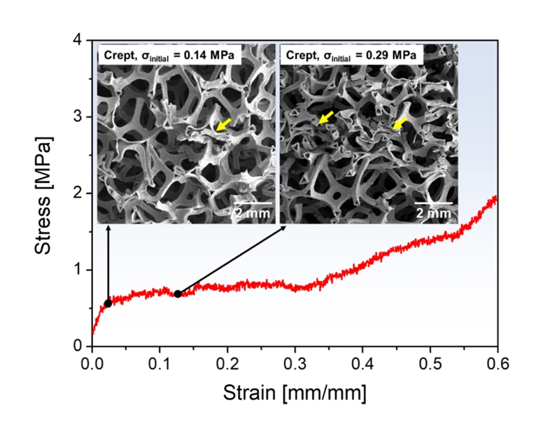 of long-term deformation behavior remains limited [28]. Since metallic foams exhibit a three-stage compressive stress-strain flow curve—consisting