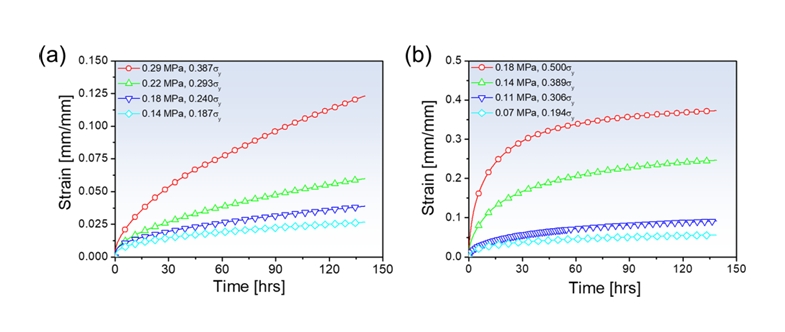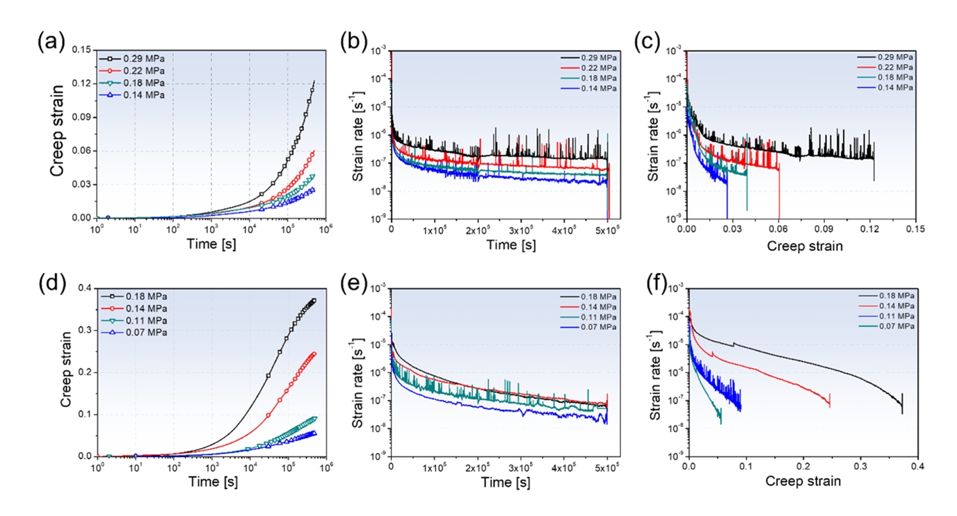 0.29 MPa, suggesting a significant temperature dependence. Despite the increased creep