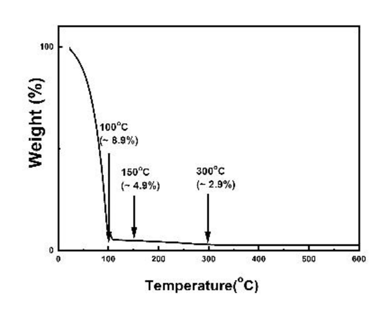 to 600 °C under a nitrogen atmosphere. As shown in Fig 1, an initial weight loss observed between room temperature and 100 °C corresponds