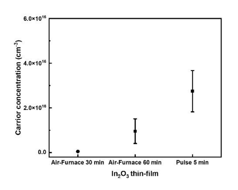 Fig 6 illustrates the carrier concentration of In2O3 films prepared by two different thermal annealing methods. When the annealing time