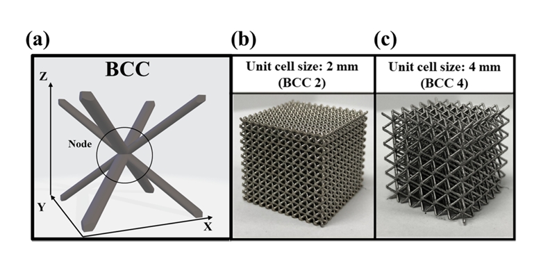 따라서 본 연구에서는 Inconel 718 합금을 기반으로 동일한 스트럿 두께를 유지하면서 단위 셀 크기를 변화시킨 BCC 격자 구조체를 LPBF