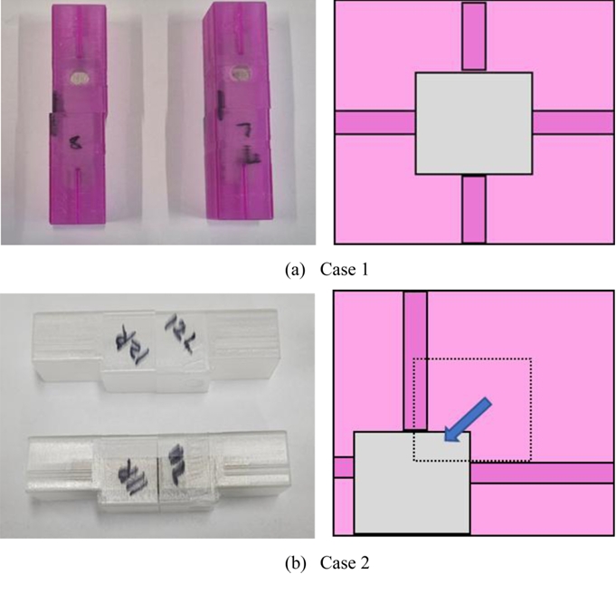 ๋์ผํ ์กฐ๊ฑด์์ ์ํํ์๊ธฐ์ ์ผ์ด์ค ์ถฉ๊ฒฉ ๊ฐ์ ๋ณด์ ์์ด ์งํํ์๋ค. ์ด๊ธฐ ์ค๊ณ์ธ Fig 3(a)์์๋ ์ํธ์ ์ผ์ด์ค ์ค์์ ๋ฐฐ์นํ์์ผ๋, ์ด ๊ฒฝ์ฐ ์ถฉ๊ฒฉ ํด๋จธ๊ฐ ์ํธ ํ๋ถ๋ฅผ ๊ฐ๊ฒฉํ์ง ๋ชปํ๊ณ ์ถฉ๊ฒฉ ๊ฐ๋๊ฐ ์๋ฃ๋ฅผ ์ ํํ๊ฒ ์ถฉ๊ฒฉํ์ง ๋ชปํ๋ ๋ฌธ์ ๊ฐ ๋ํ๋ฌ๋ค.